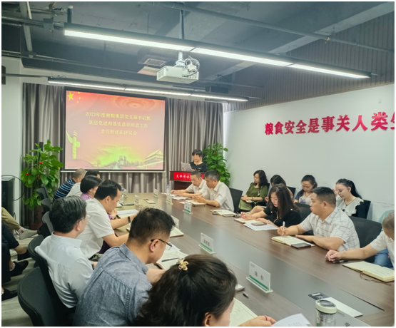 為深入學(xué)習(xí)貫徹習(xí)近平新時代中國特色社會主義思想,切實加強(qiáng)基層黨組織建設(shè),進(jìn)一步提高黨建工作質(zhì)量和基層黨組織書記履職能力,5月23日上午,衡糧集團(tuán)召開2023年度黨支部書記抓基層黨建和落實意識形態(tài)工作責(zé)任制述職評議會。黨委書記、董事長陳廷對支部書記述職進(jìn)行一對一點評并作總結(jié)講話,黨委專職副書記汪曲波主持會議。集團(tuán)班子成員,全體在崗黨員、非中共黨員中層管理人員及部室牽頭人參加會議。